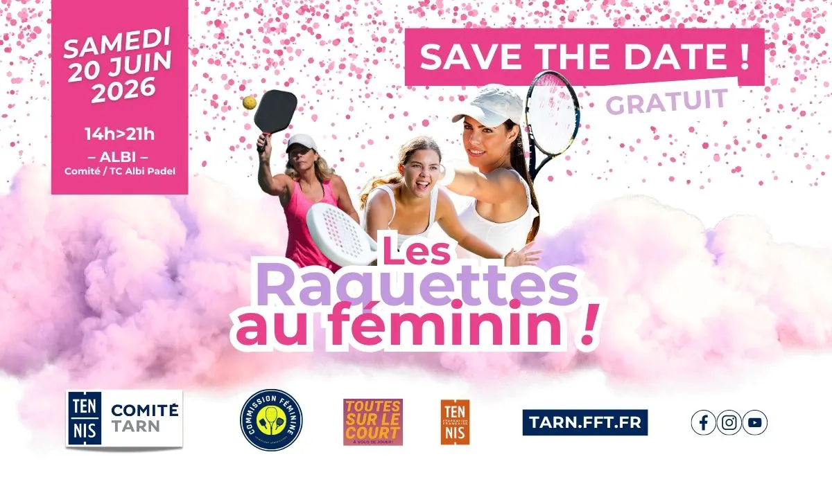 Cette animation gratuite, dédiée aux pratiques féminines (Tennis, Padel, Pickleball...) est réservée aux licenciées tarnaises. Nous vous invitons à réserver dès aujourd'hui cette date dans vos agendas !