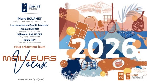 Toute l'équipe du Comité de Tennis du Tarn vous présente ses Meilleurs Vœux pour 2026 !